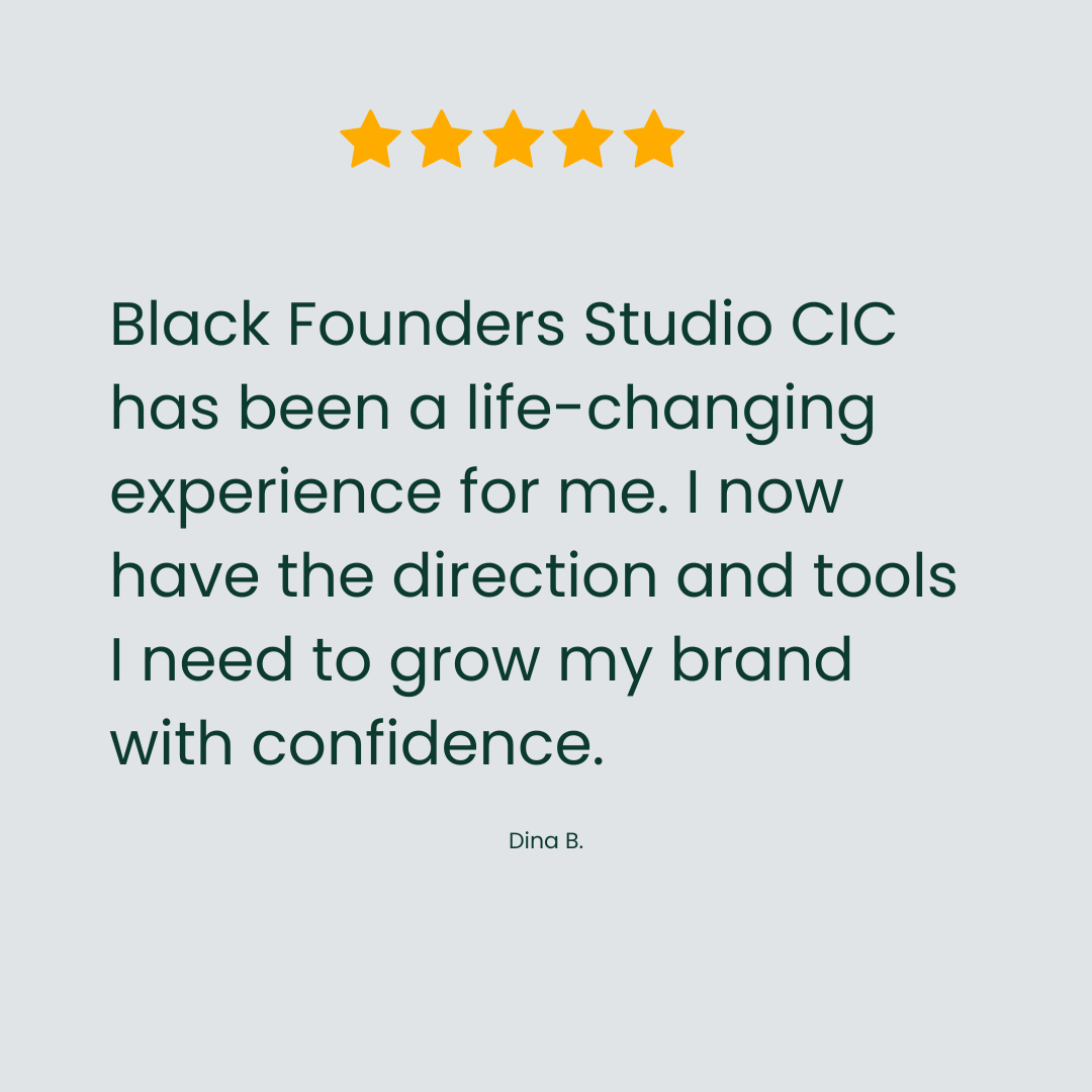 At Black Founders Studio, Olivia found the clarity, correction, and direction she needed to turn her ideas into structured, scalable brands. The programme became a lifeline at a moment when her business was close to closing, giving her new confidence, new strategy, and a renewed belief in her entrepreneurial journey.